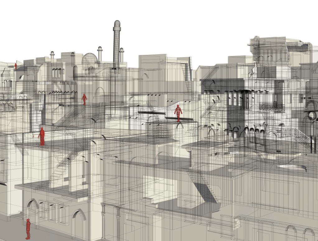 “Three Walls. Spatial Narratives of Old Mosul” uses state of the art digital technology to take you on a journey through the Old Town of Mosul as it was and how it got destroyed. The exhibition focuses on the history and use of three buildings in Old Mosul: the al-Nuri Mosque, the Meydan House and the Syriac-Catholic Church. They symbolize its millennial old history of peaceful coexistence and the brutal incursion into public and private lives by ISIS.